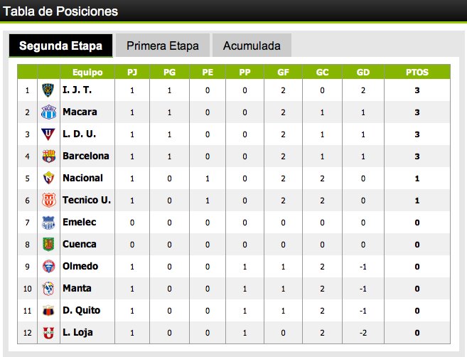 In the remaining games Emelec won 1-0 at home to Deportivo Cuenca while El Nacional drew 2-2 against Universidad Technico.