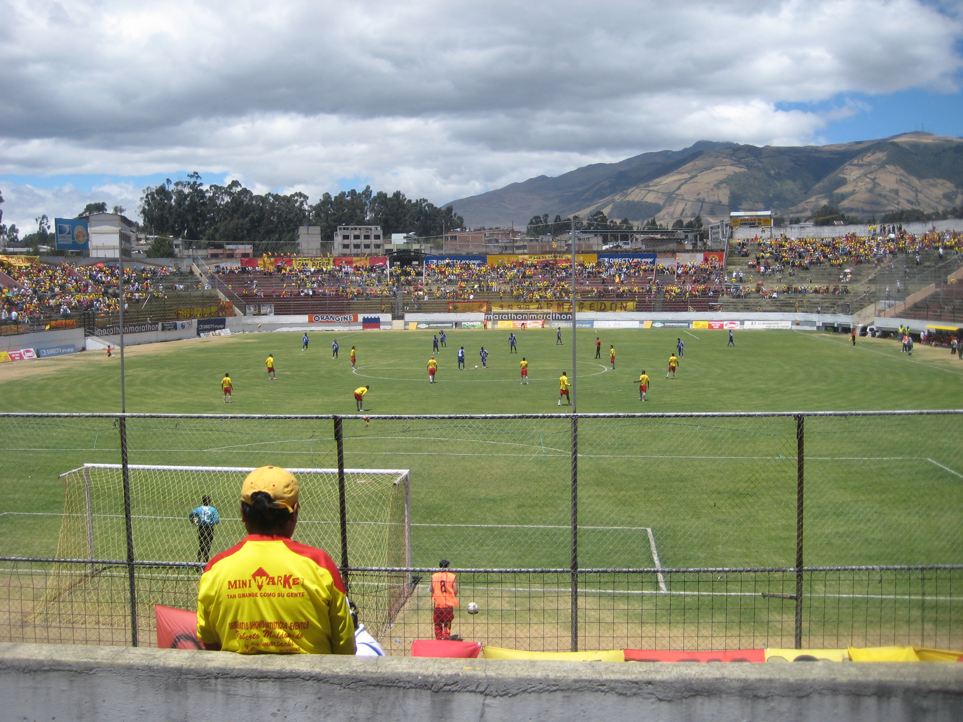 A bumper crowd of 8,000 half-filled the Estadio Chillogallo giving a loud and frenzied atmosphere, helped along by a couple of bands, many drums and more than a few rattles.