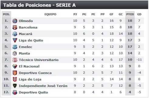 There is a genuine strength to the Serie A this season with all teams taking surprising places. Usually the Guayaquil giants: Emelec and Barcelona would dominate along with Liga de Quito. This year however the smaller teams have stepped up to the plate and made genuine challenges to the status quo.